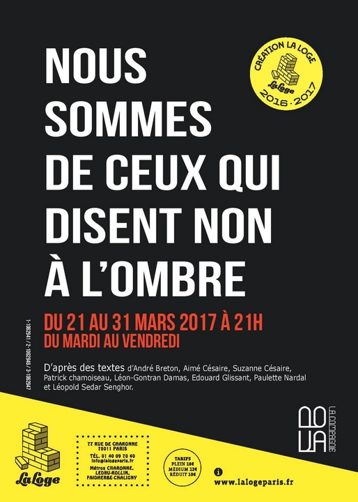 D’après des textes d’Aimé et Suzanne Césaire, Léopold Sédar Senghor, Léon-Gontran Damas, Patrick Chamoiseau, les sœurs Nardal, Edouard Glissant