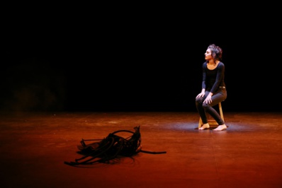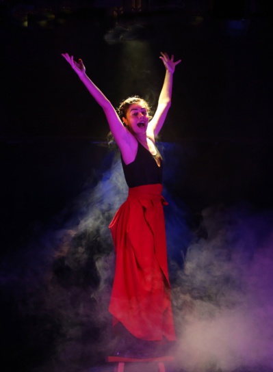 « Kiki de la Huchette » se donne à cœur et à corps dans un solo maîtrisé et haut en couleurs.